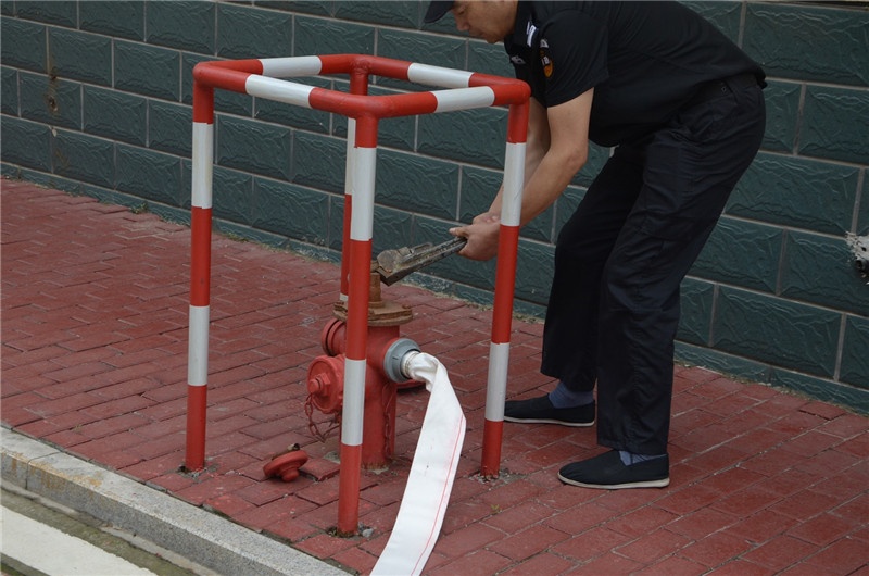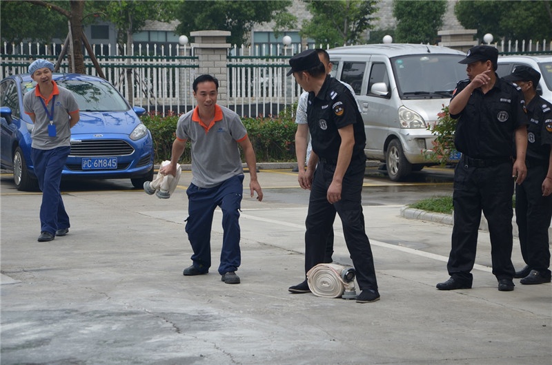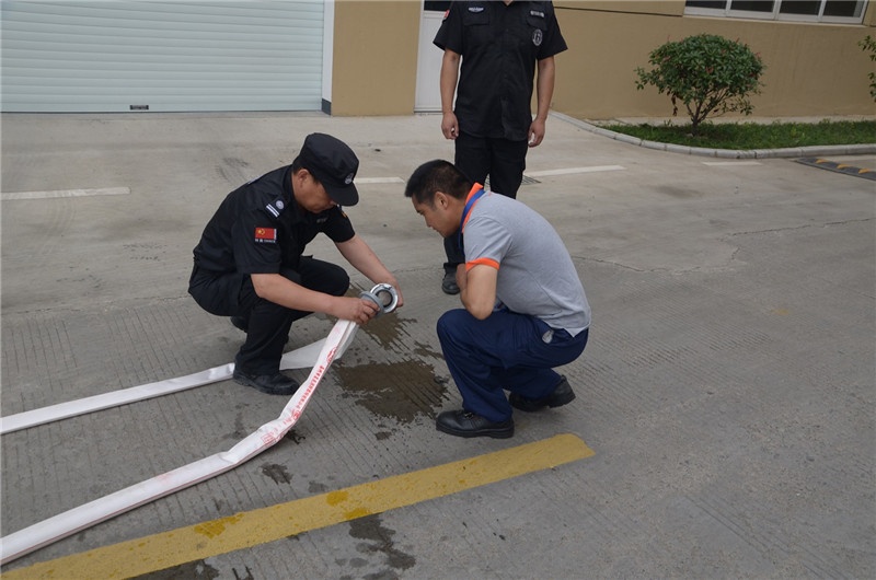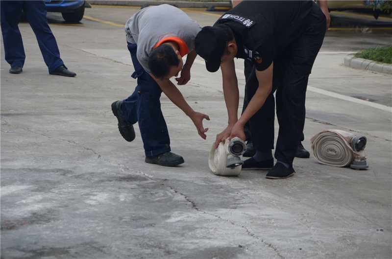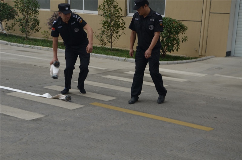 Next is the operation and use of fire-fighting water guns. The employees cooperated in pairs to conduct practical training of fire-fighting water guns.